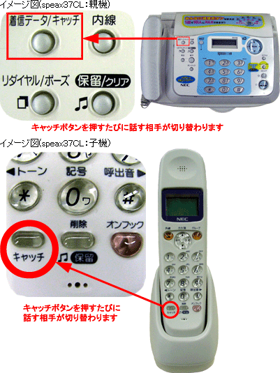 通話中に別の電話がかかってきた際に「キャッチ」ボタン(名称はご利用の電話機によって異なります)を押して、切り替えます。