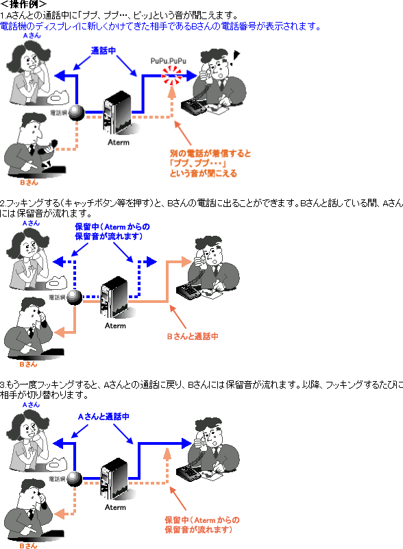 ※操作方法等詳細については、各電話機に添付されている説明書をご参照になるか、ご利用の各電話機メーカーへお問い合わせくださいますようお願いいたします。
