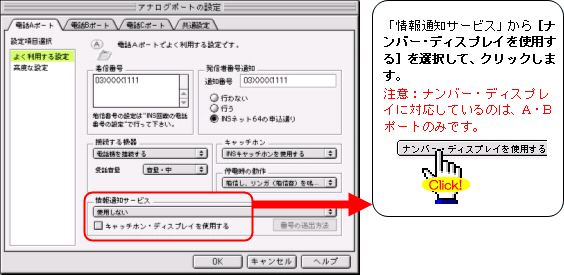 注:FAXやモデムを接続したポートには、キャッチホンを設定しないでください。通信中に割込音が入ると、通信エラーとなります。