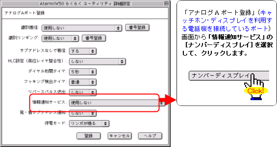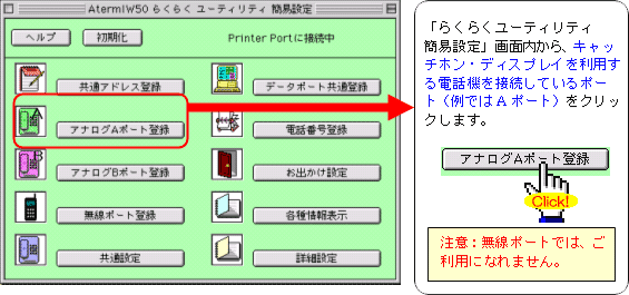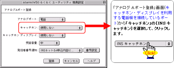 注:FAXやモデムを接続したポートには、キャッチホンを設定しないでください。通信中に割込音が入ると、通信エラーとなります。
