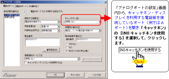 Windowsでのキャッチホン・ディスプレイ設定方法