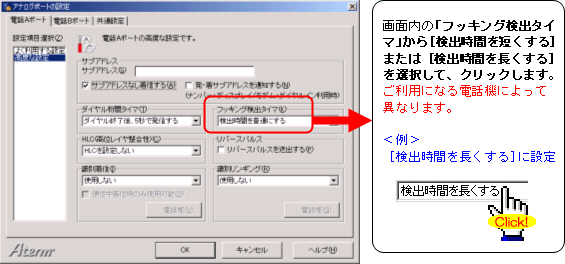 フッキングがうまく働かないとき(キャッチホンの切り替えができないときなど)は、以下の手順でフッキング検出タイマを調整してください。