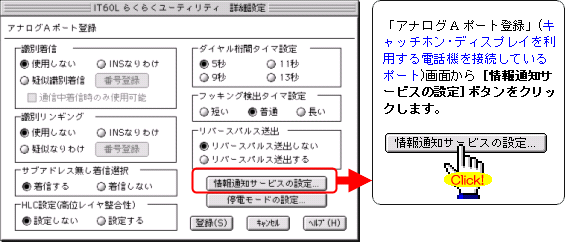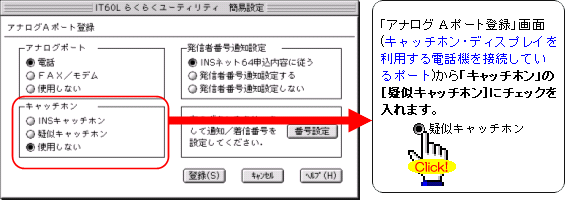 注:FAXやモデムを接続したポートには、キャッチホンを設定しないでください。通信中に割込音が入ると、通信エラーとなります。