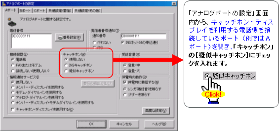 注:FAXやモデムを接続したポートには、キャッチホンを設定しないでください。通信中に割込音が入ると、通信エラーとなります。