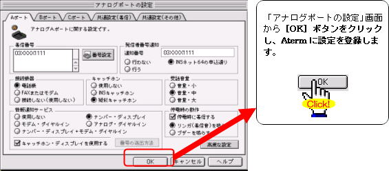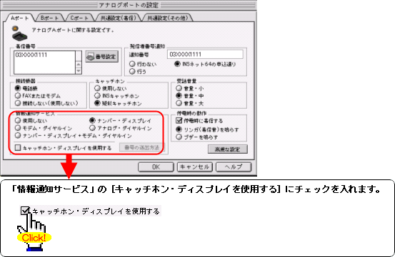 注:FAXやモデムを接続したポートには、キャッチホンを設定しないでください。通信中に割込音が入ると、通信エラーとなります。