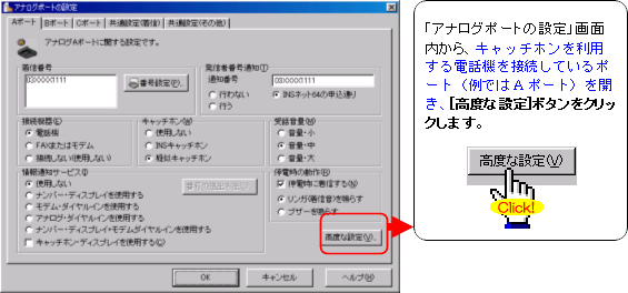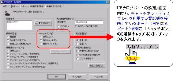 注:FAXやモデムを接続したポートには、キャッチホンを設定しないでください。通信中に割込音が入ると、通信エラーとなります。