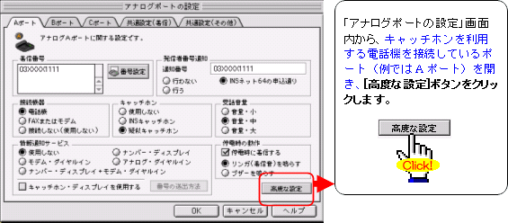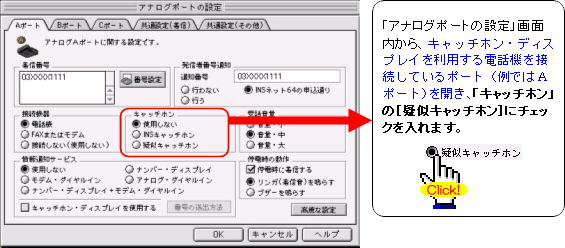 注:FAXやモデムを接続したポートには、キャッチホンを設定しないでください。通信中に割込音が入ると、通信エラーとなります。
