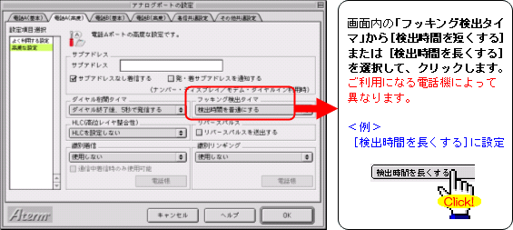 フッキングがうまく働かないとき(キャッチホンの切り替えができないときなど)は、以下の手順でフッキング検出タイマを調整してください。