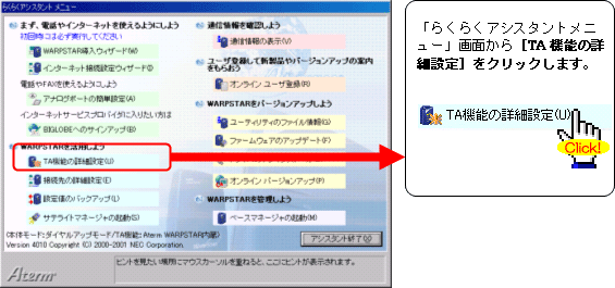当設定画面は、アシスタントVer4.01、ファームウェアVer4.10を利用した説明になっています。