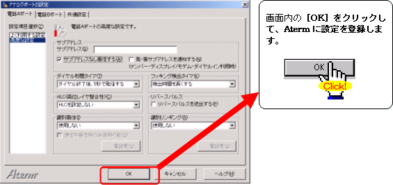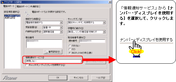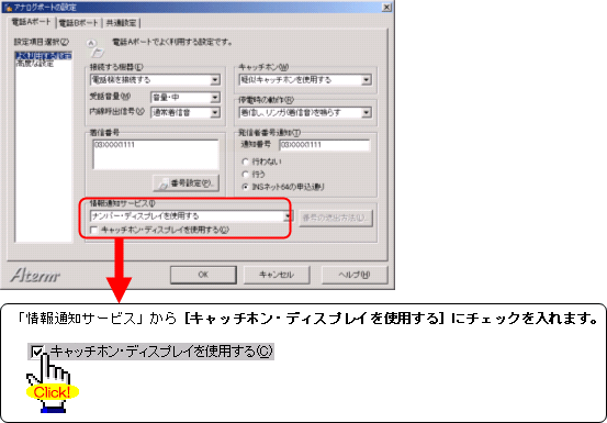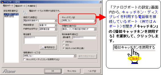 注:FAXやモデムを接続したポートには、キャッチホンを設定しないでください。通信中に割込音が入ると、通信エラーとなります。