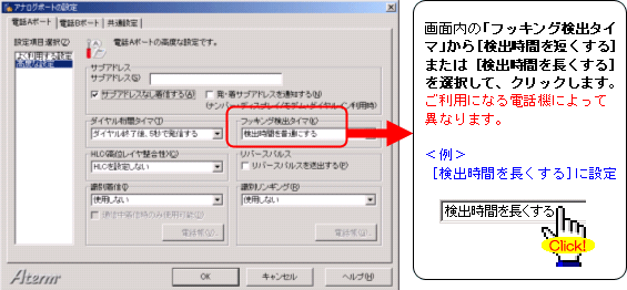フッキングがうまく働かないとき(キャッチホンの切り替えができないときなど)は、以下の手順でフッキング検出タイマを調整してください。