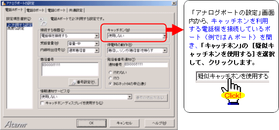 注:FAXやモデムを接続したポートには、キャッチホンを設定しないでください。通信中に割込音が入ると、通信エラーとなります。