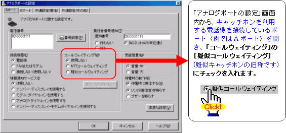 注:FAXやモデムを接続したポートには、キャッチホンを設定しないでください。通信中に割込音が入ると、通信エラーとなります。