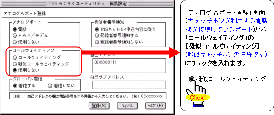 注:FAXやモデムを接続したポートには、キャッチホンを設定しないでください。通信中に割込音が入ると、通信エラーとなります。