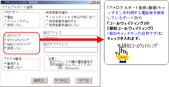 注:FAXやモデムを接続したポートには、キャッチホンを設定しないでください。通信中に割込音が入ると、通信エラーとなります。