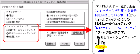 注:FAXやモデムを接続したポートには、キャッチホンを設定しないでください。通信中に割込音が入ると、通信エラーとなります。