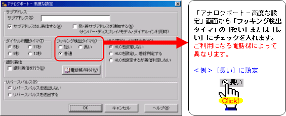 フッキングがうまく働かないとき(キャッチホンの切り替えができないときなど)は、以下の手順でフッキング検出タイマを調整してください。