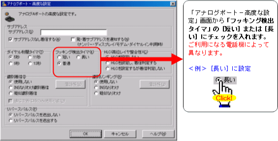 フッキングがうまく働かないとき(キャッチホンの切り替えができないときなど)は、以下の手順でフッキング検出タイマを調整してください。