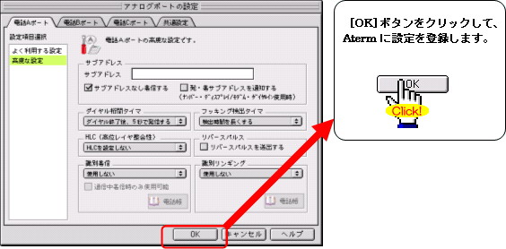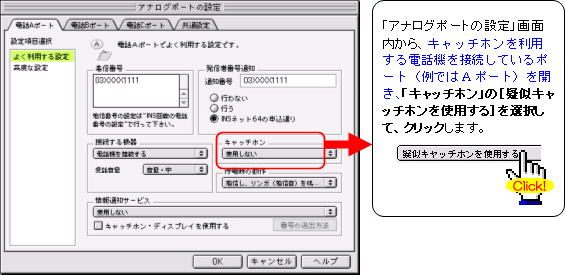 注:FAXやモデムを接続したポートには、キャッチホンを設定しないでください。通信中に割込音が入ると、通信エラーとなります。
