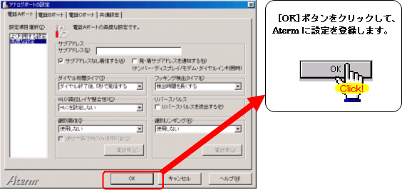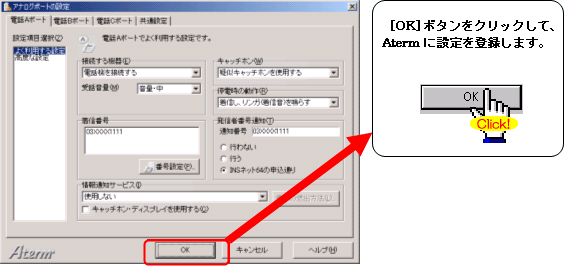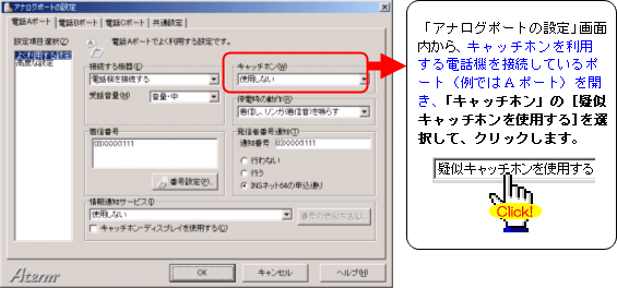 注:FAXやモデムを接続したポートには、キャッチホンを設定しないでください。通信中に割込音が入ると、通信エラーとなります。