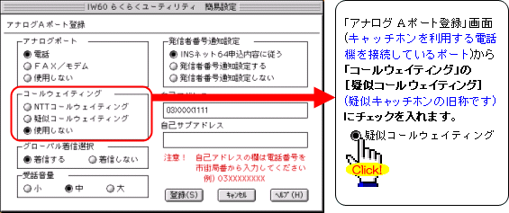 注:FAXやモデムを接続したポートには、キャッチホンを設定しないでください。通信中に割込音が入ると、通信エラーとなります。