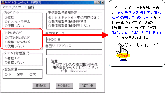注:FAXやモデムを接続したポートには、キャッチホンを設定しないでください。通信中に割込音が入ると、通信エラーとなります。