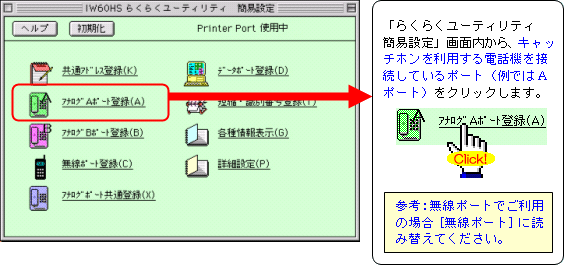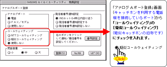 注:FAXやモデムを接続したポートには、キャッチホンを設定しないでください。通信中に割込音が入ると、通信エラーとなります。