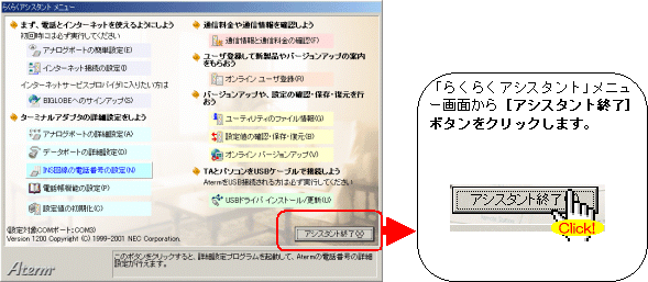 当設定画面は、アシスタントVer1.20、ファームウェアVer1.30を利用した説明になっています。 (当設定画面は、IT31Lのらくらくアシスタントを利用しています。)