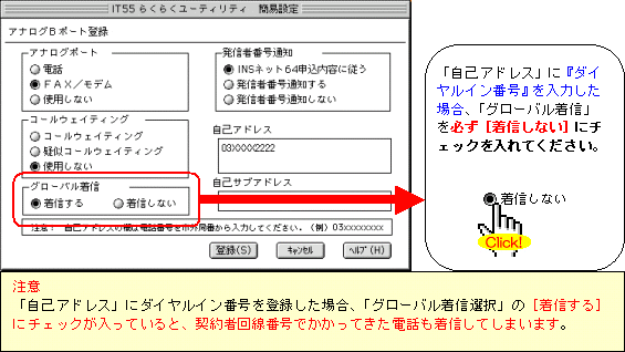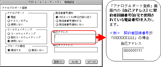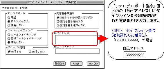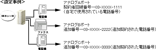 本画面では、事例として次のように電話番号を割り振る設定方法を記載しています。 設定する際には、ご利用になる環境に読み替えて、実際にご利用の電話番号にて設定してください。