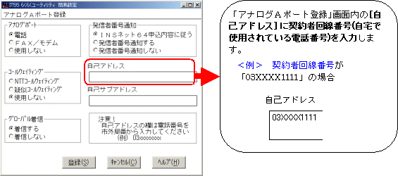 設定する際には、ご利用になる環境に読み替えて、実際にご利用の電話番号にて設定してください。