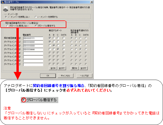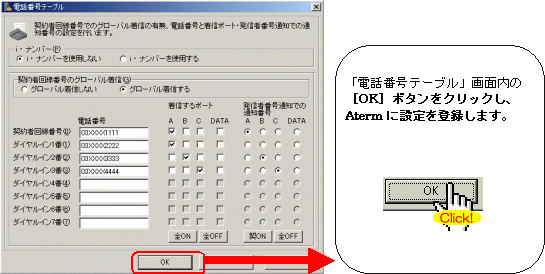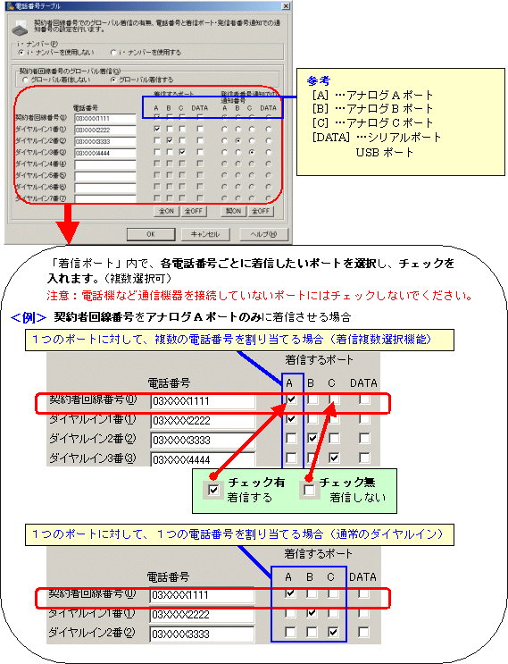 本画面では、事例として次のように電話番号を割り振る設定方法を記載しています。