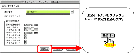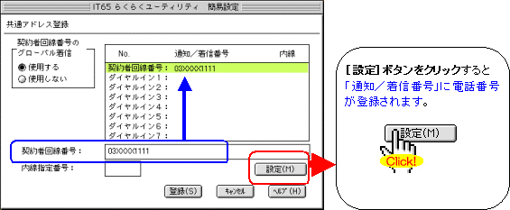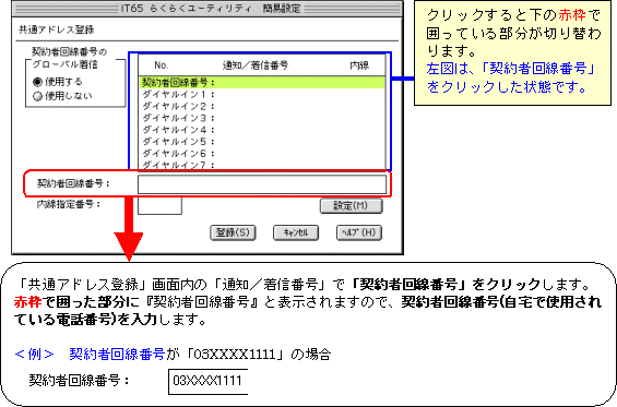 設定する際には、ご利用になる環境に読み替えて、実際にご利用の電話番号にて設定してください。