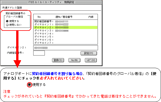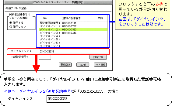 本画面では、事例として次のように電話番号を割り振る設定方法を記載しています。