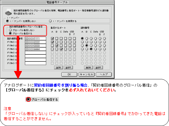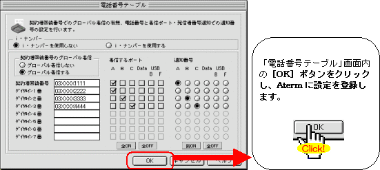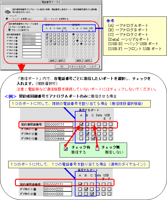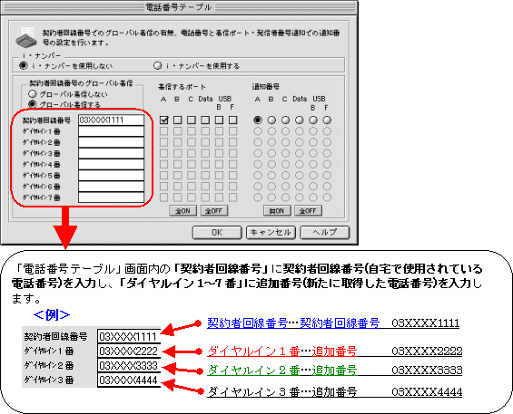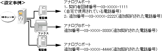 本画面では、事例として次のように電話番号を割り振る設定方法を記載しています。