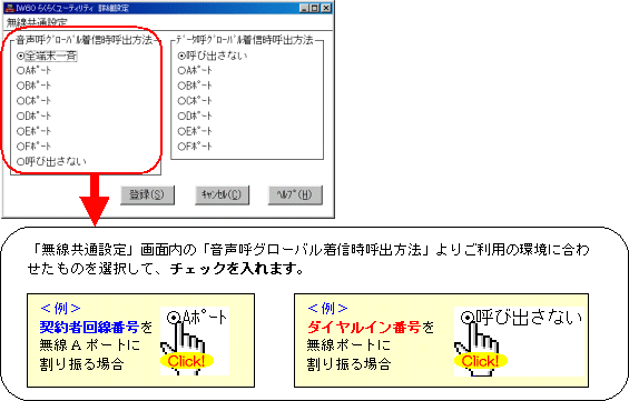 本画面では、事例として次のように電話番号を割り振る設定方法を記載しています。