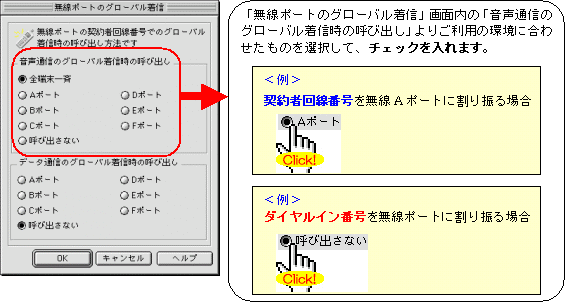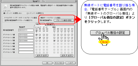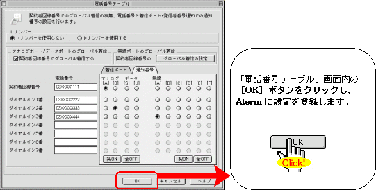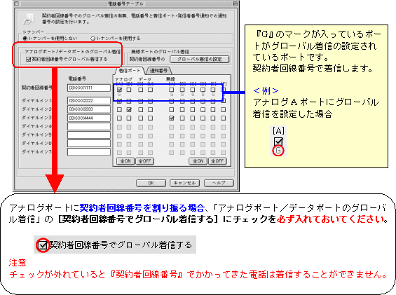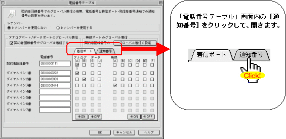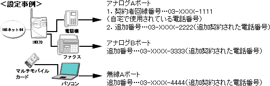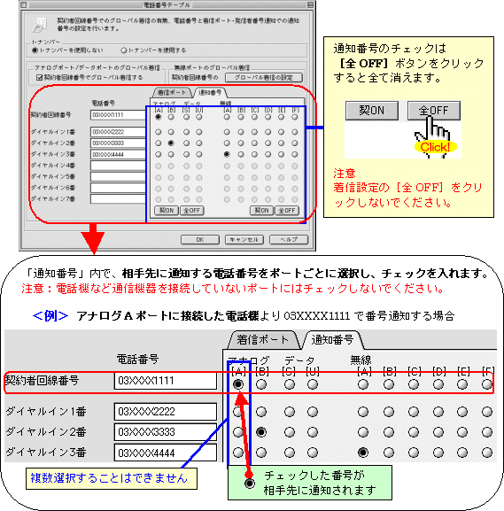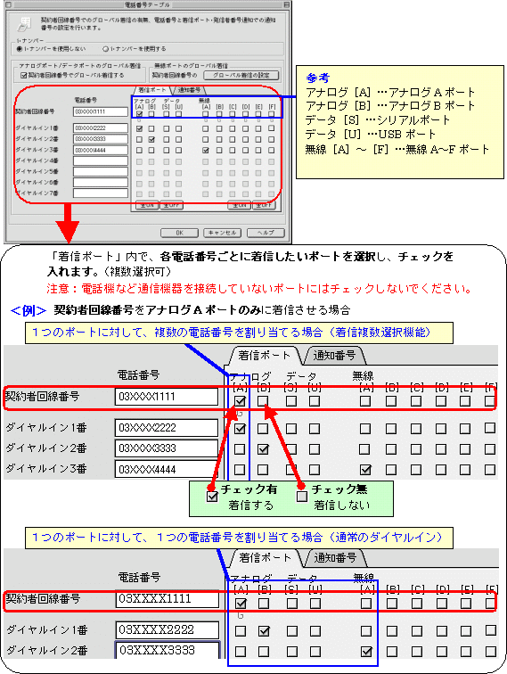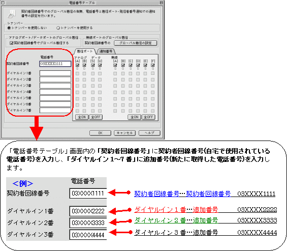 本画面では、事例として次のように電話番号を割り振る設定方法を記載しています。