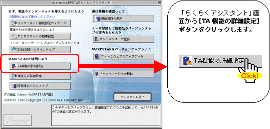当設定画面は、アシスタントVer1.10、ファームウェアVer1.11を利用した説明になっています。 (当設定画面は、WL50Tのらくらくアシスタントを利用しています。)