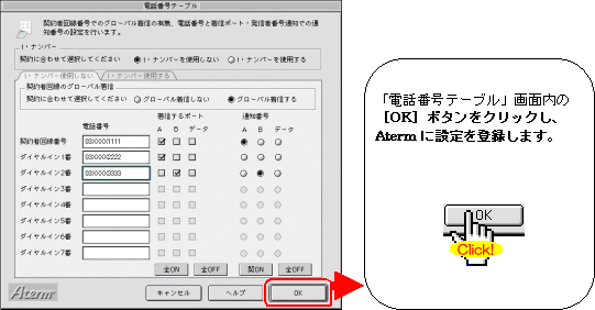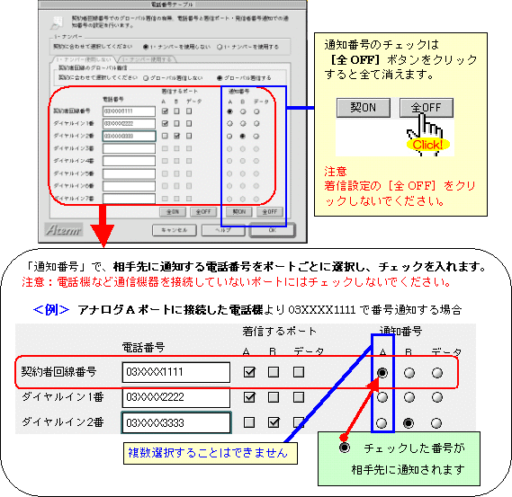 本画面では、事例として次のように電話番号を割り振る設定方法を記載しています。
