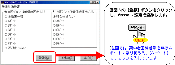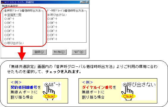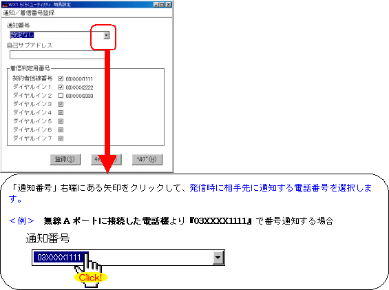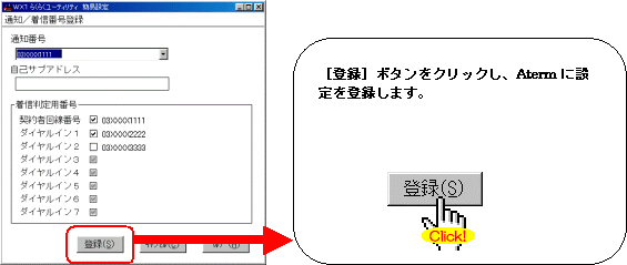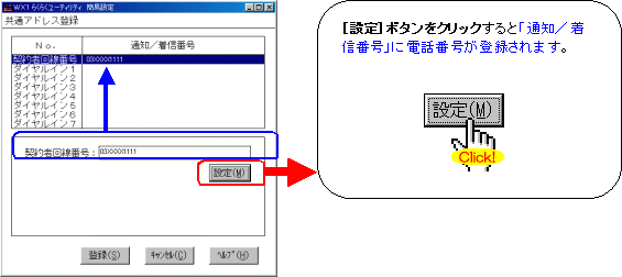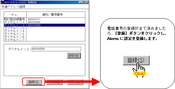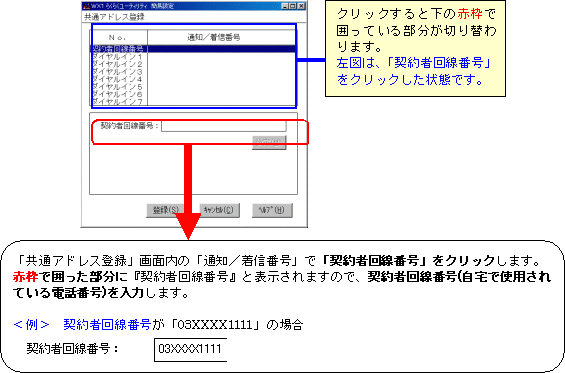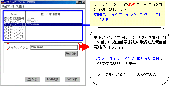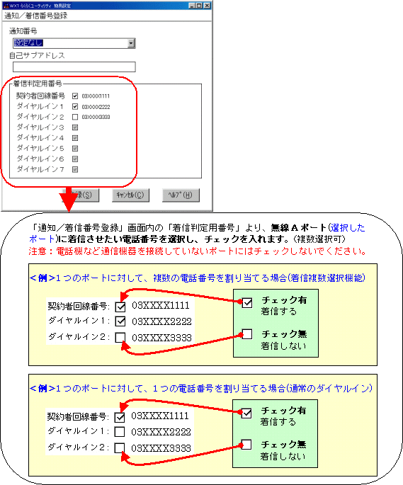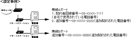 本画面では、事例として次のように電話番号を割り振る設定方法を記載しています。 設定する際には、ご利用になる環境に読み替えて、実際にご利用の電話番号にて設定してください。
