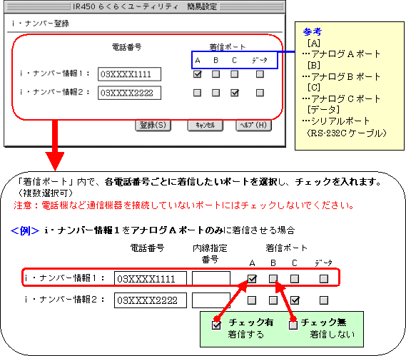 本画面では、事例として次のように電話番号を割り振る設定方法を記載しています。