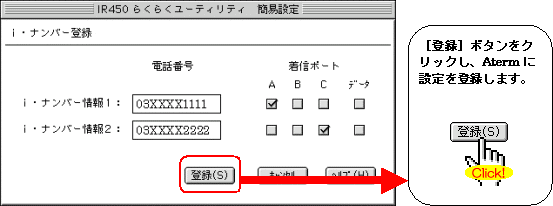 設定する際には、ご利用になる環境に読み替えて、実際にご利用の電話番号にて設定してください。