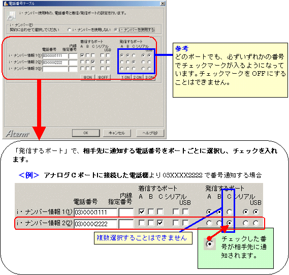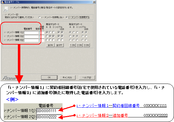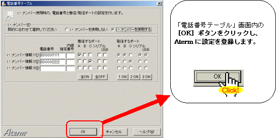 本画面では、事例として次のように電話番号を割り振る設定方法を記載しています。