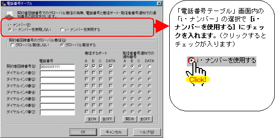本画面では、事例として次のように電話番号を割り振る設定方法を記載しています。