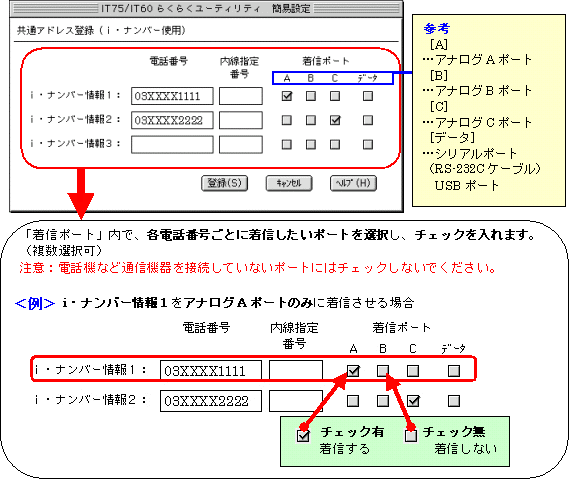 本画面では、事例として次のように電話番号を割り振る設定方法を記載しています。