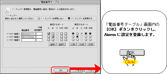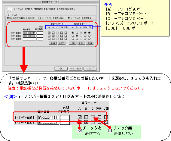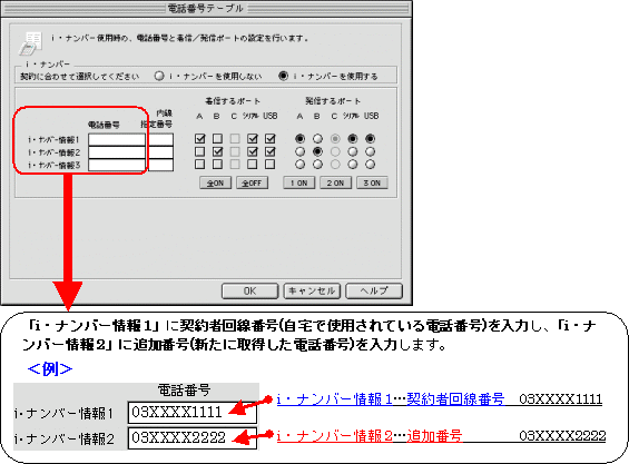 本画面では、事例として次のように電話番号を割り振る設定方法を記載しています。