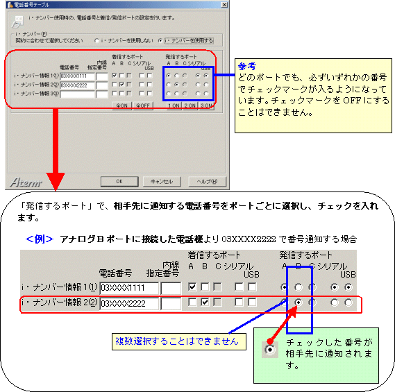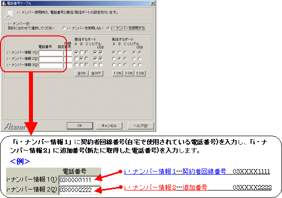 本画面では、事例として次のように電話番号を割り振る設定方法を記載しています。
