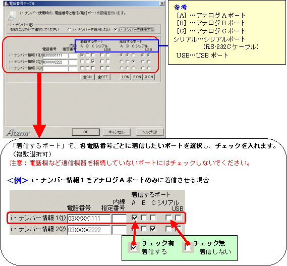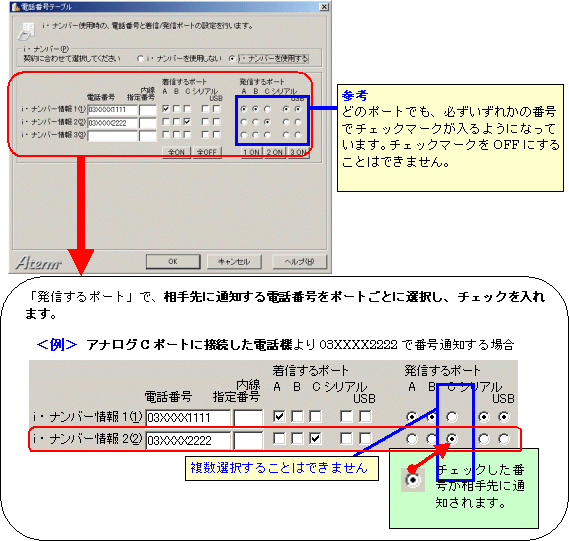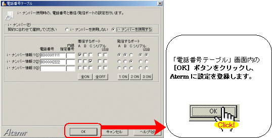 本画面では、事例として次のように電話番号を割り振る設定方法を記載しています。