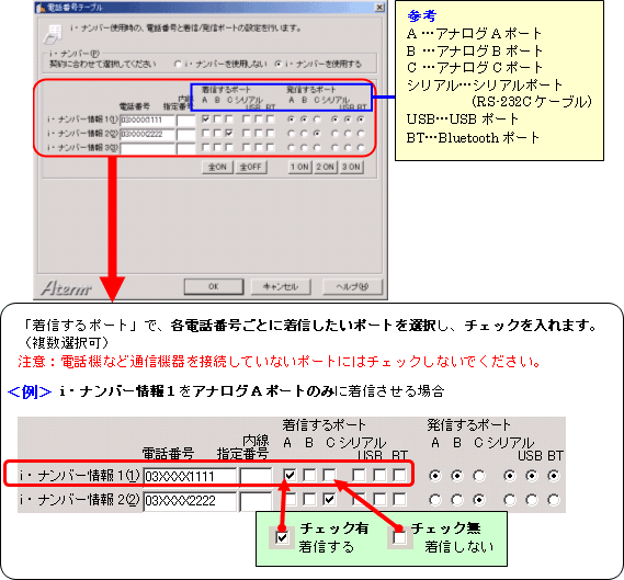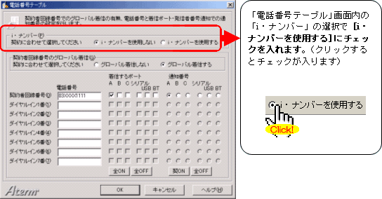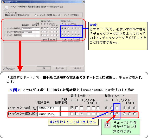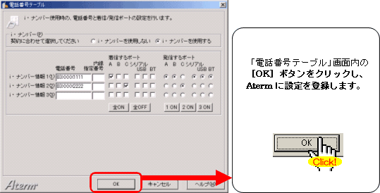 本画面では、事例として次のように電話番号を割り振る設定方法を記載しています。