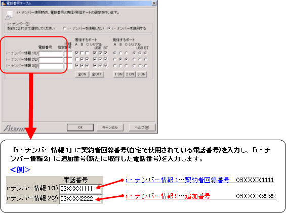 設定する際には、ご利用になる環境に読み替えて、実際にご利用の電話番号にて設定してください。