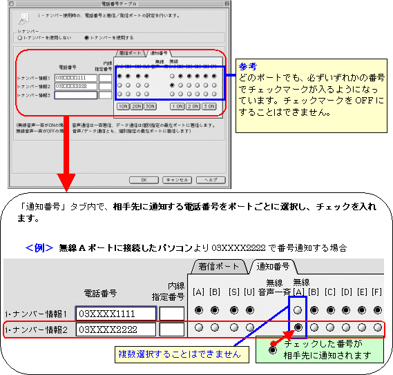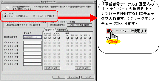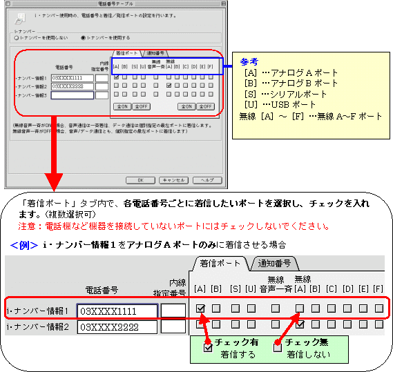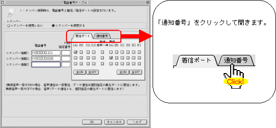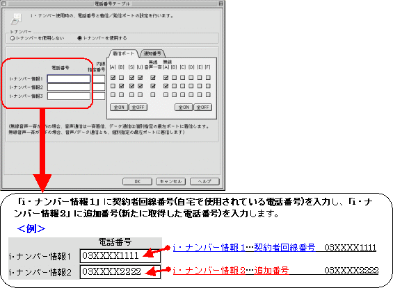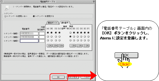 本画面では、事例として次のように電話番号を割り振る設定方法を記載しています。 設定する際には、ご利用になる環境に読み替えて、実際にご利用の電話番号にて設定してください。
